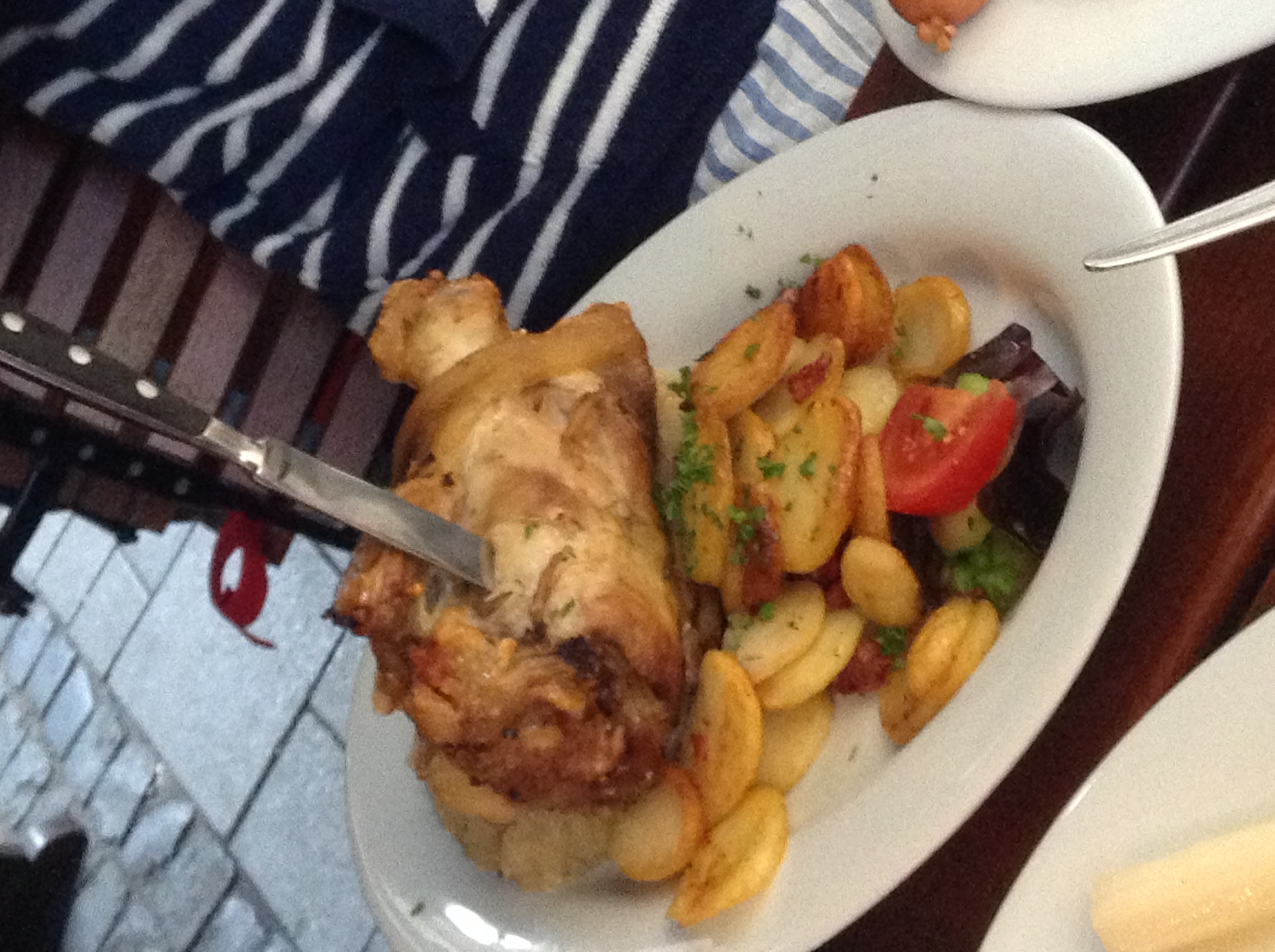 なぜか肉料理にはナイフが刺されて運ばれてきました.
